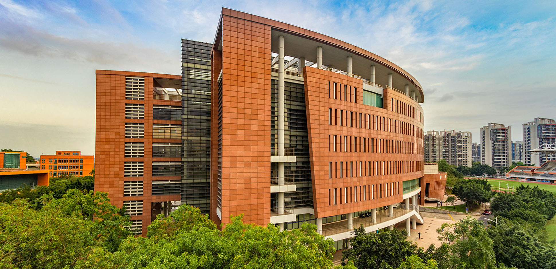 华南理工大学大学城校区图书馆位于美丽的广州大学城东南面,面迎珠江,气势雄伟,外形宛如张开的双臂,寓意拥抱知识与智慧,是大学城校区的标志性建筑之一。大学城校区图书分馆馆舍于2006年8月竣工,建筑面积42300平方米,分为地下一层,地上八层,是一座集楼宇自控,智能布线,防火监控于一体的现代化生态型图书馆。